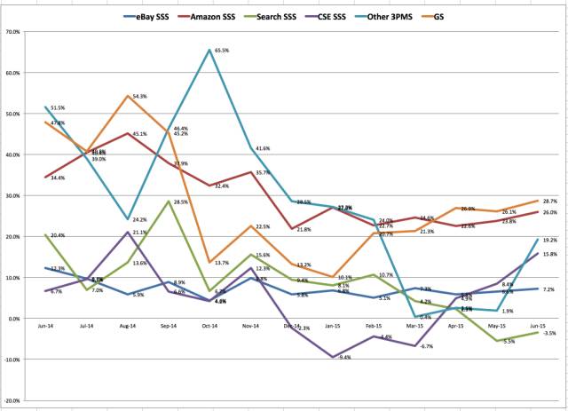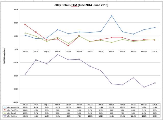eBay 2015年6月份的同店销售额增长7.2%,数据如下: